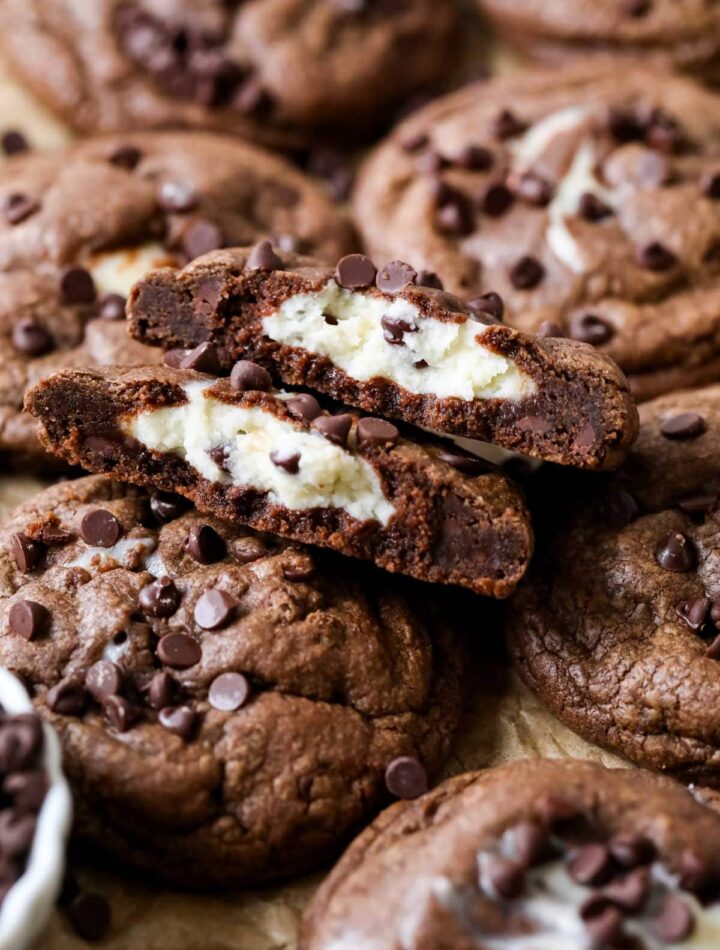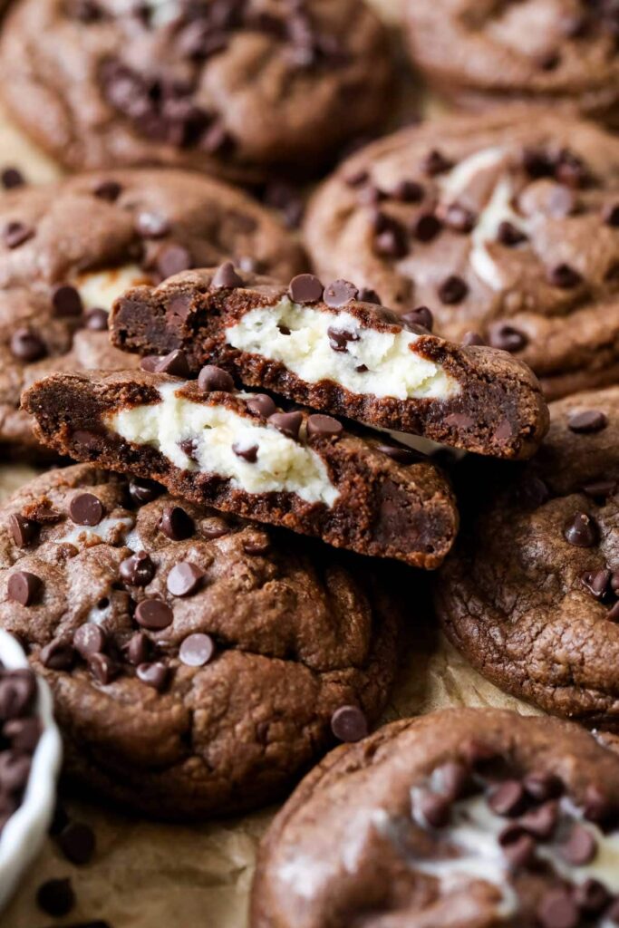 Beat together the cream cheese, powdered sugar, and vanilla extract until silky smooth. Gently stir in the mini chocolate chips. Scoop the mixture into tablespoon-sized portions and freeze until solid. This step ensures the filling stays intact while baking.