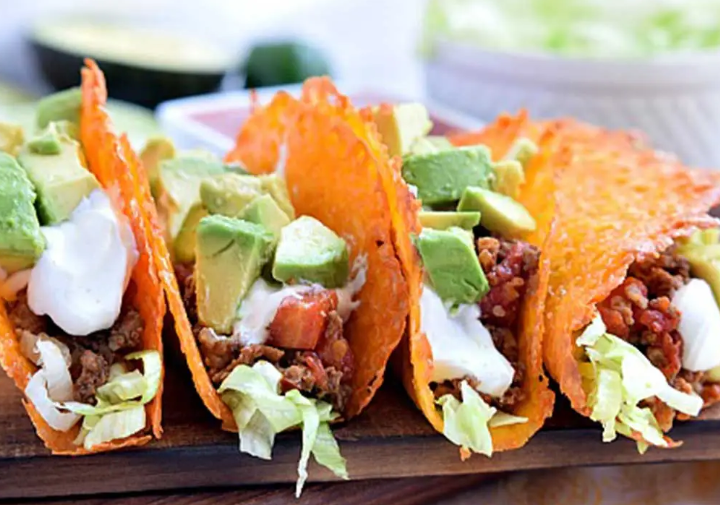 Carefully lift each cheese circle and place it over a spoon handle, rolling pin, or taco rack to form a taco shell shape.