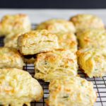 - Whisk together egg and heavy cream in a small bowl and brush the tops of each scone with the egg wash. Sprinkle the scones with the remaining cheddar cheese.