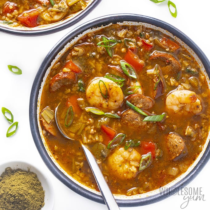 - Traditional gumbo uses flour for roux—skip it to keep carbs low.