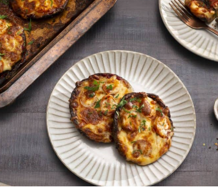 Oven ko 400°F (200°C) par preheat karo. Portobello mushrooms ko clean karke stems remove karo.