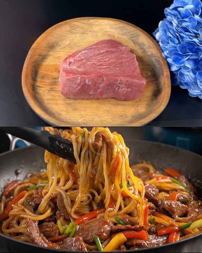 Add the beef and stir-fry quickly over high heat until browned on the outside but not completely cooked through. Remove from the pan and set aside.