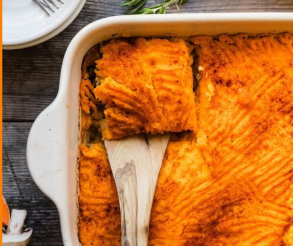 This shepherd’s pie creamy mashed sweet potatoes version is not just comfort food. It is also nutritious.