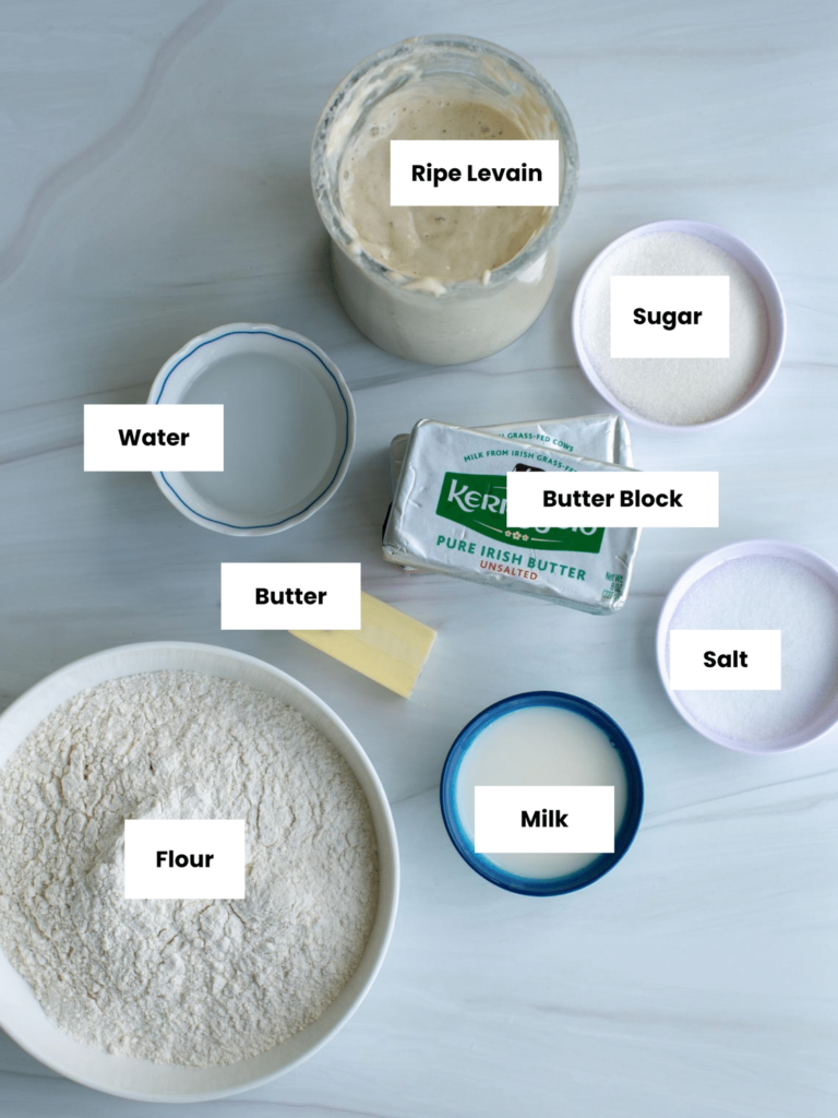- High Quality Butter – Good butter is crucial in this recipe—it might even be the most important ingredient in these sourdough croissants! A good unsalted European-style butter with an 80% or higher butterfat is what you want. American butter has too much water in it and doesn’t make it a good candidate. Even though the butter is expensive, it’s worth it —if you are going to spend the time making this recipe, then you want to use quality ingredients to get it right. I used Kerry Gold unsalted butter with good results.