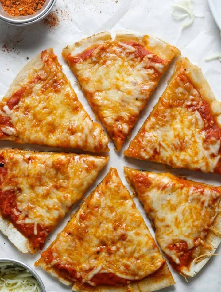 Transfer the dough to parchment paper and add your favorite sauce, cheese, and toppings.