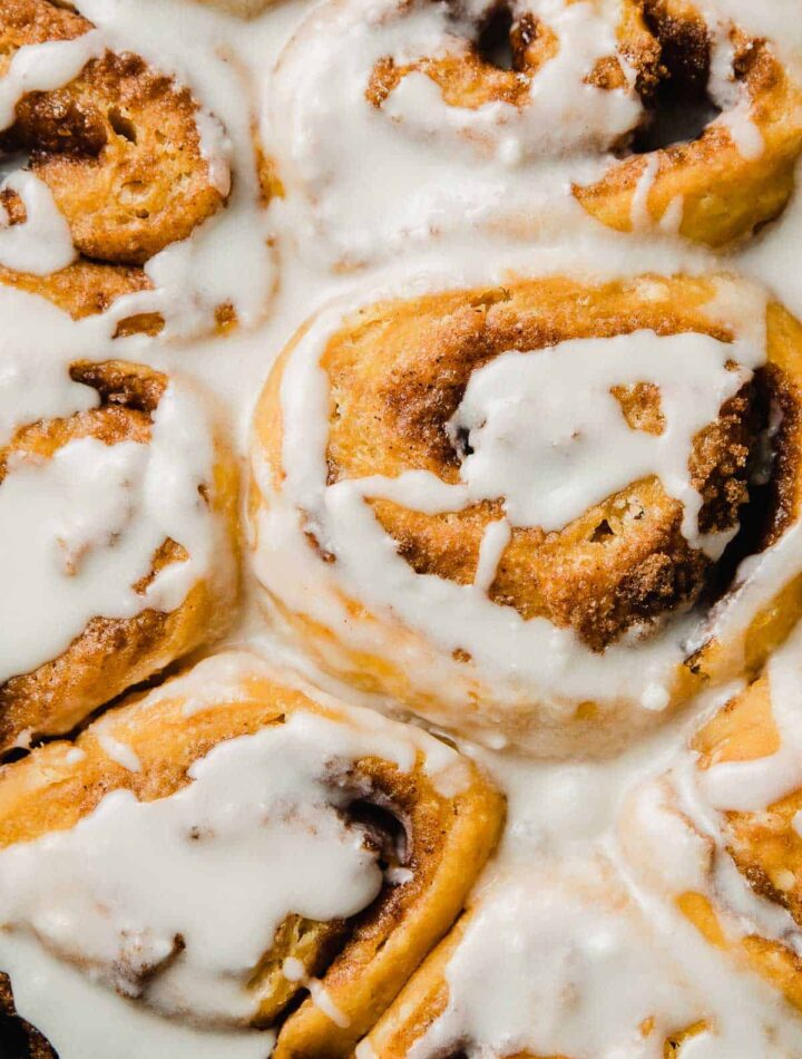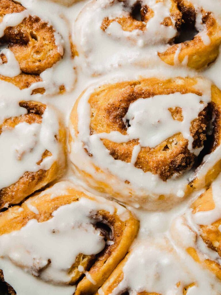 Enjoy your soft, spiced sourdough pumpkin cinnamon rolls with creamy frosting! 🎃✨